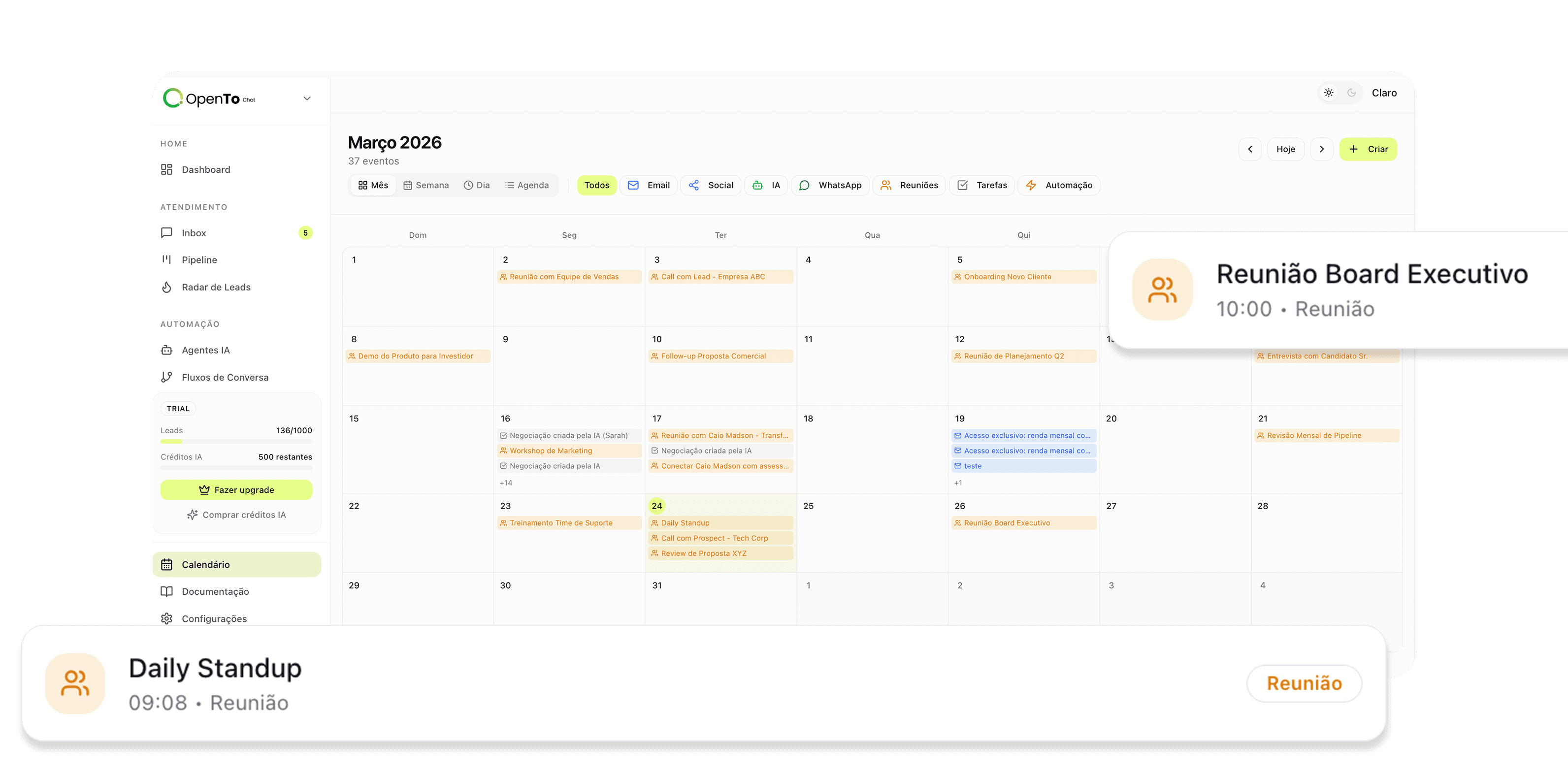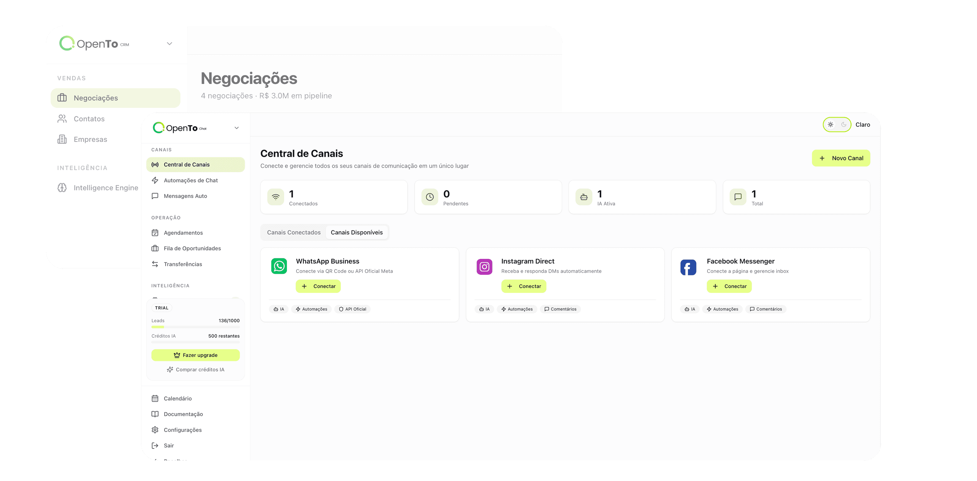 Todos os leads, conversas e negócios em um único pipeline.